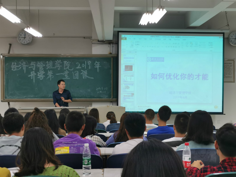 为庆祝中华人民共和国成立70周年,进一步丰富我院校园文化,大力弘扬以爱国主义为核心的伟大民族精神,根据《共青团攀枝花学院委员会关于开展庆祝中华人民共和国成立70周年系列活动的通知》(攀学院团﹝2019﹞31号)要求,我院于9月27日晚在二教201教室开展经济与管理学院2019年开学第一堂团课。我院分团委书记胡遵程、团委学生会代表、各社团代表、青志协经管服务站代表、我院艺术团代表、我院学生球队联盟代表、各班班长及团支书等150余人参加2019年新学期开学第一堂团课。