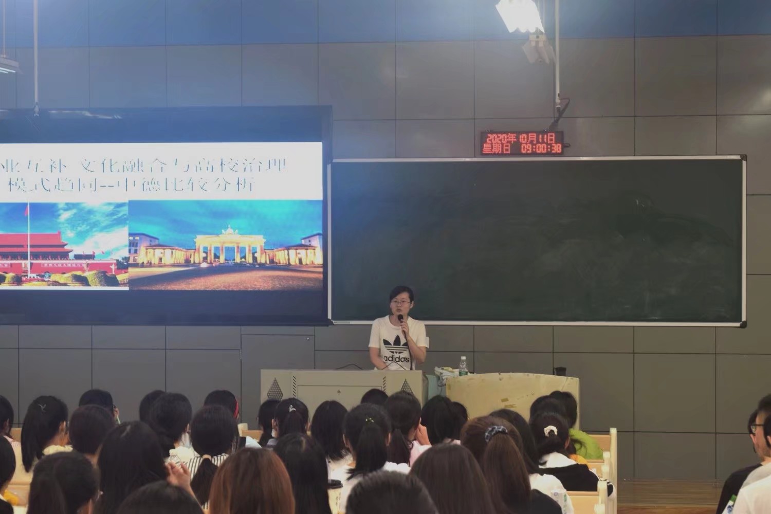 10月11日上午,我院于二教2-1开展“博思讲堂”之产业互补、文化融合与高校治理模式趋同——中德比较分析讲座。主讲人为我院分团委老师唐彩虹,2020级全体学生参加此次讲座。