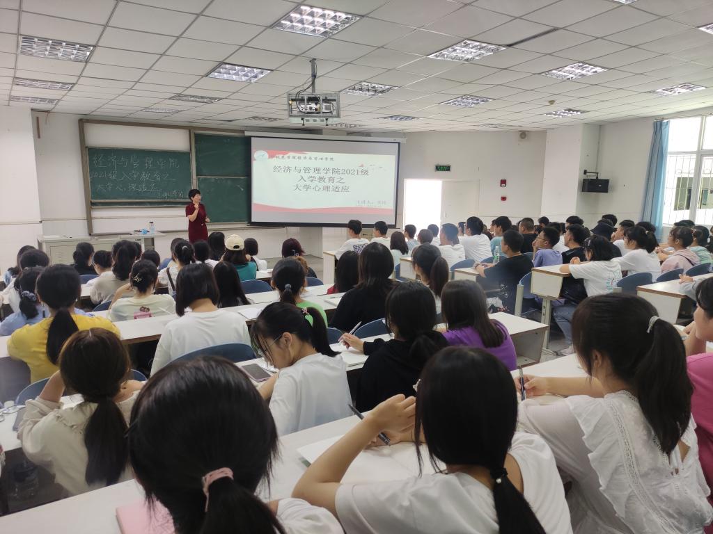9月10日下午,经济与管理学院于C教1-1、2-1开展2021级入学教育之大学心理适应讲座。本次讲座由李玲老师主讲。出席本次讲座的有学生科老师胡遵程,新生辅导员周屹。2021级全体新生参加此次讲座。