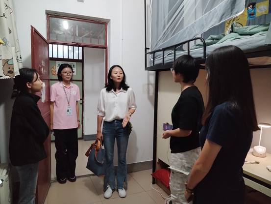9月7日晚上,经济与管理学院开展走访新生寝室活动。出席此次活动的有经济与管理学院党委书记陶睿,学生科科长孙亚明,分团委书记李抒泽,2025级新生辅导员孙艳敏、汪流露,分团委学生会主席团成员和部分学生干部参与其中。