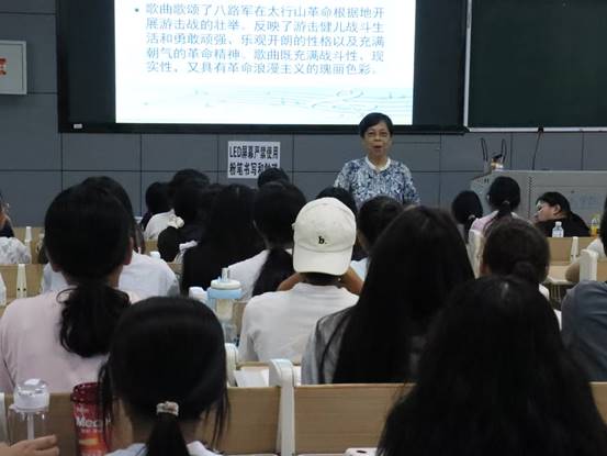 9月14日下午,经济与管理学院于志学楼101和116开展“红色经典音乐与历史知识”主题教育活动。经济与管理学院关工委罗莉担任主讲人,2025级全体新生参与其中。