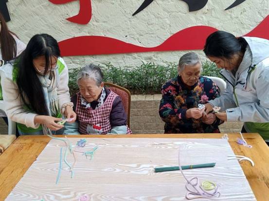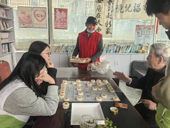 在工作人员的组织下,志愿活动有序开展。志愿者们擦洗桌椅板凳,清扫地面垃圾。随后,他们与老人们进行了亲切的交谈,一起下象棋、做游戏并与老人共同参与扭扭棒手工创作,制作了一系列精美的小物件,帮助老人们锻炼了他们的动手操作能力。